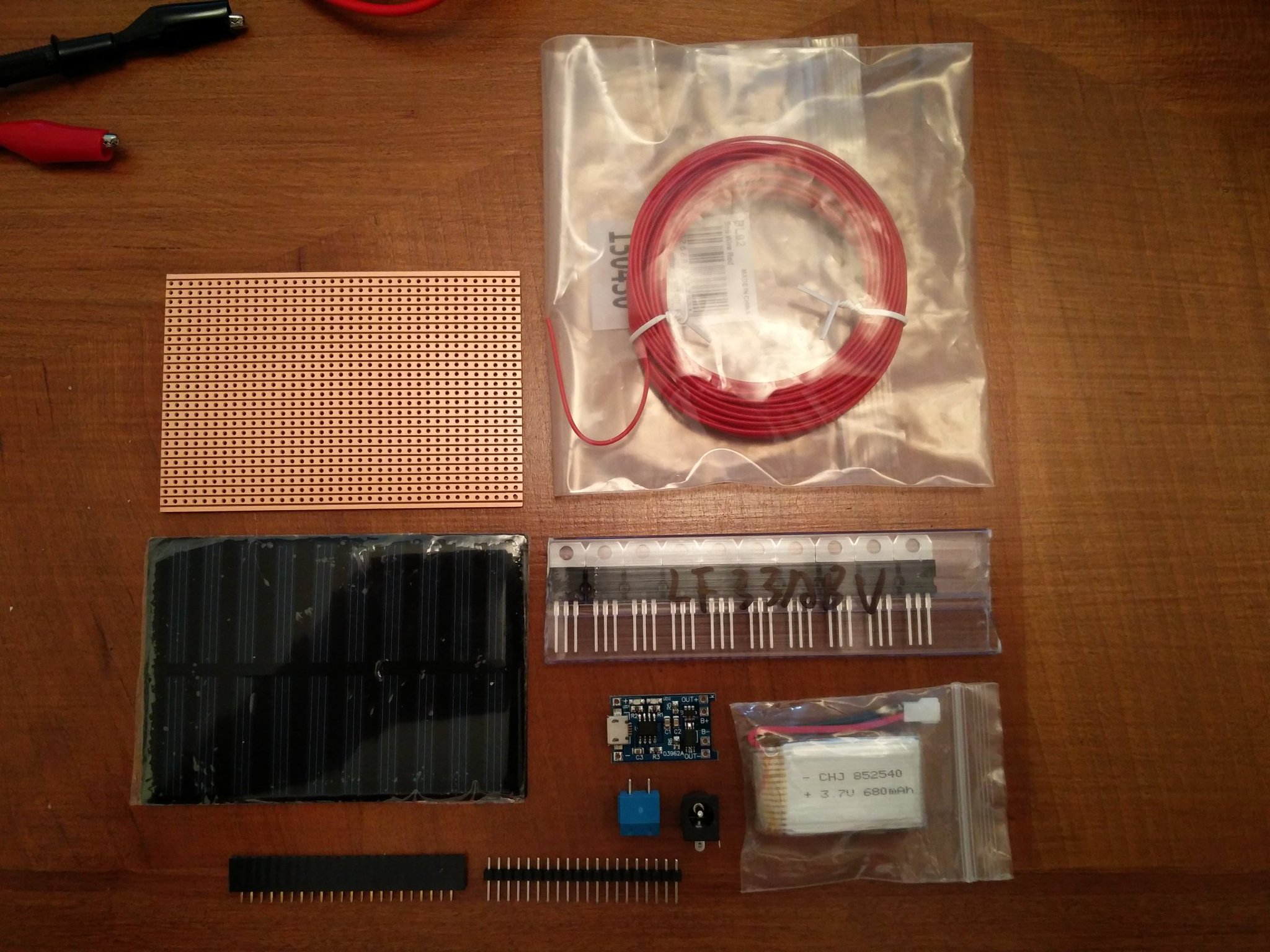 I kept this idea bubbling in the background whilst building out other more general features of my custom web based ESP firmware and a few months ago I started gathering bits and pieces from aliexpress and eBay to form the basis of a prototyped custom rechargeable battery solar power supply. The parts list I gathered together was: