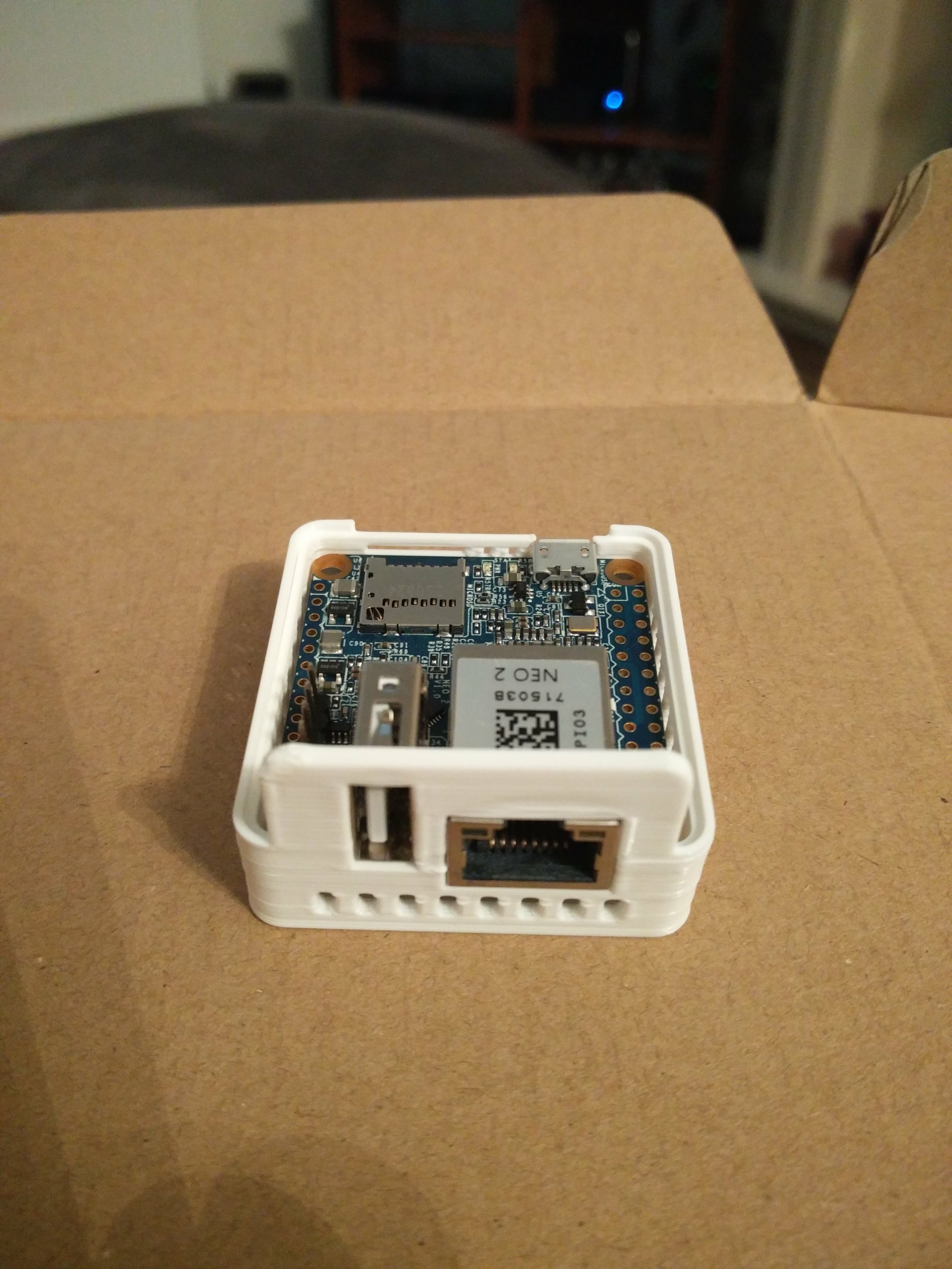- A FriendlyArm Neo2 SBC, heatsink and 3d printed enclosure: http://www.friendlyarm.com/index.php?route=product/product&path=69&product_id=180. Total cost: $28.93 USD including delivery to the UK